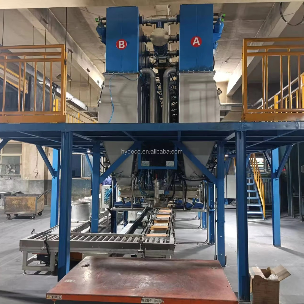 Yes, it can be arranged in one-story factory buildings. lt uses a steel structure platform with built-in unpacking and feeding dust removal devices to handle dust from weighing and unpacking.